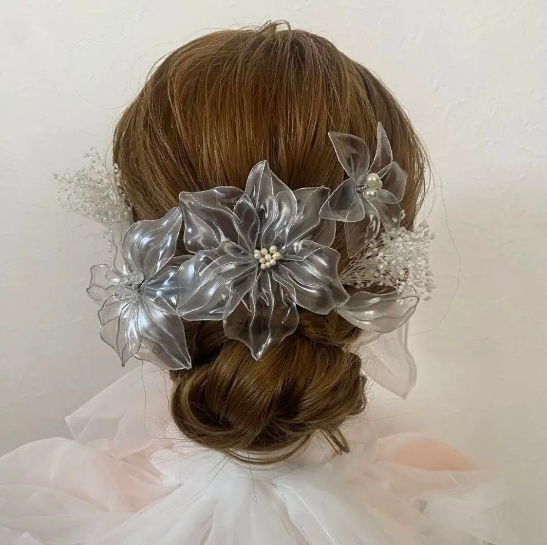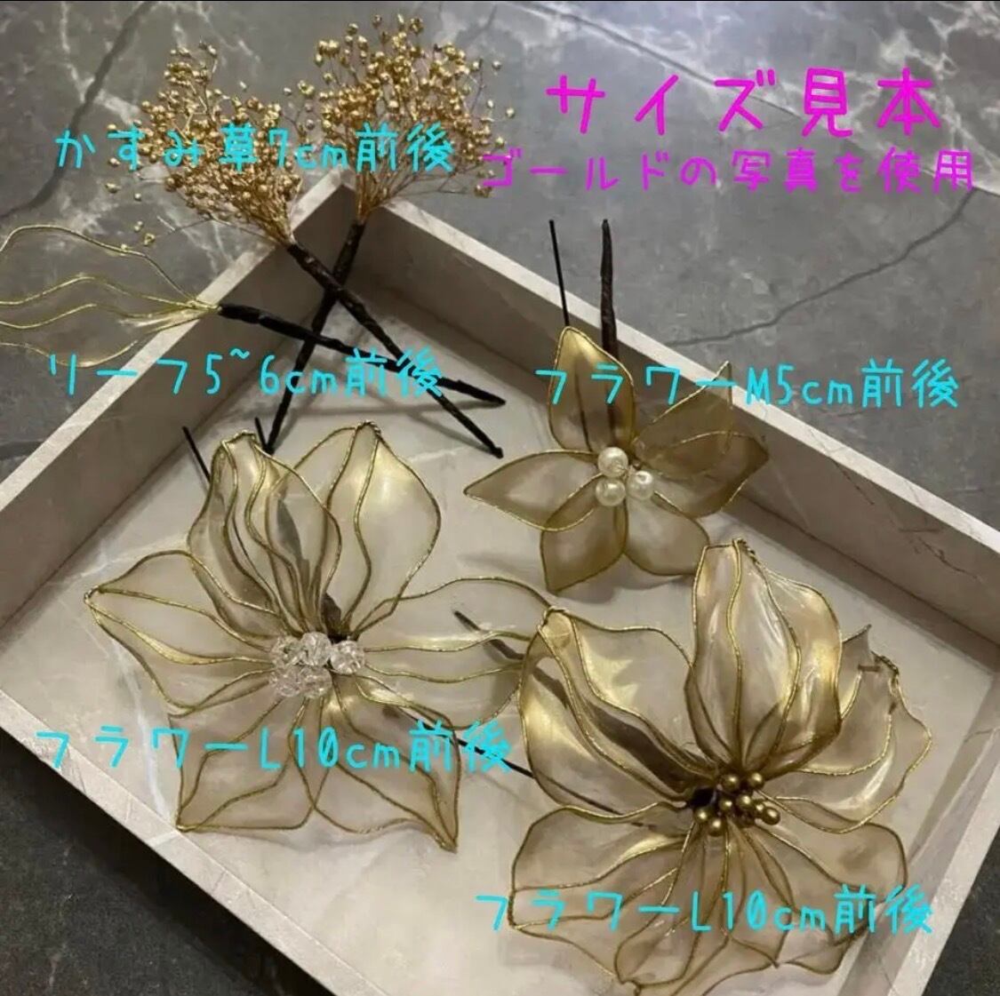 また、かすみ草は顔料で着色しておりますので、どうしても顔料の色落ち、色移りがあります。ピン部分に付いてしまう事もあるのでご了承ください