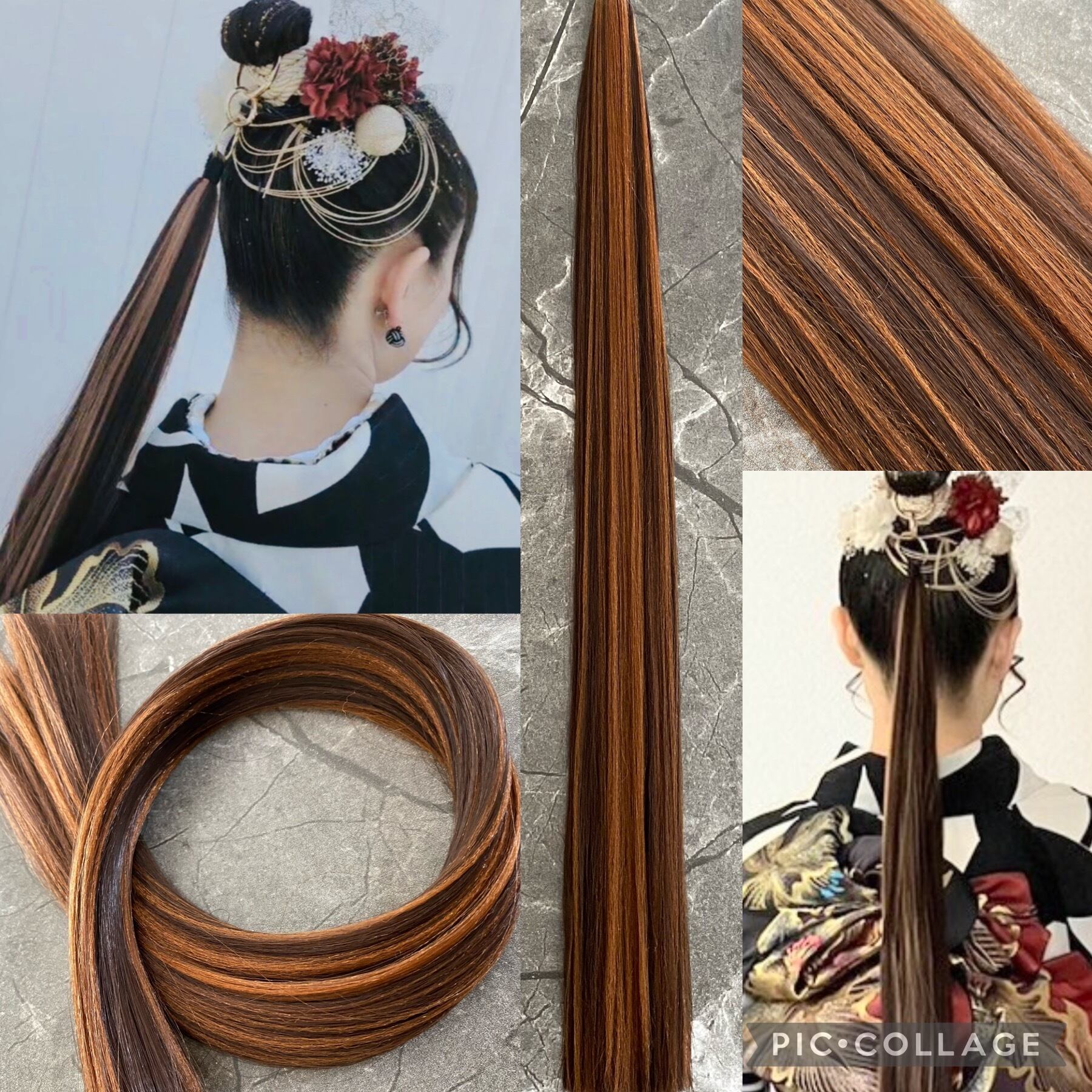 チョコブラウンオレンジMIX ポニーテールリング 成人式 袴 卒業式 着物