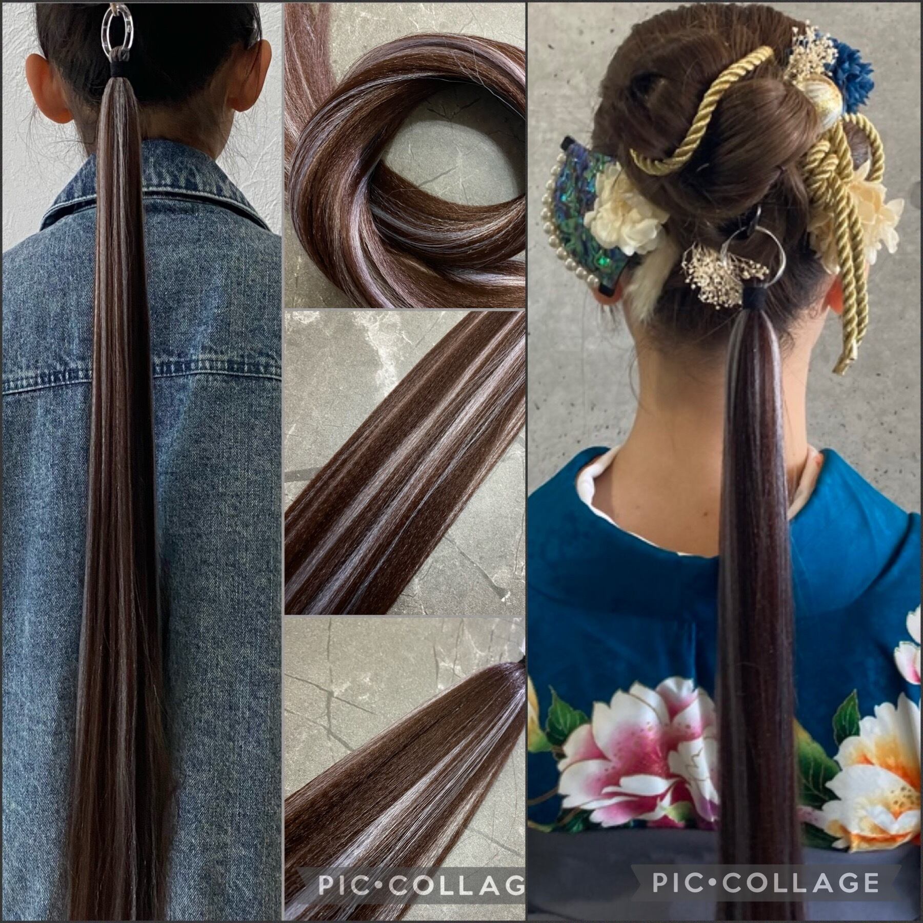 シルバーグレーダークブラウンMIX ポニーテールリング 成人式 袴 卒業式 着物