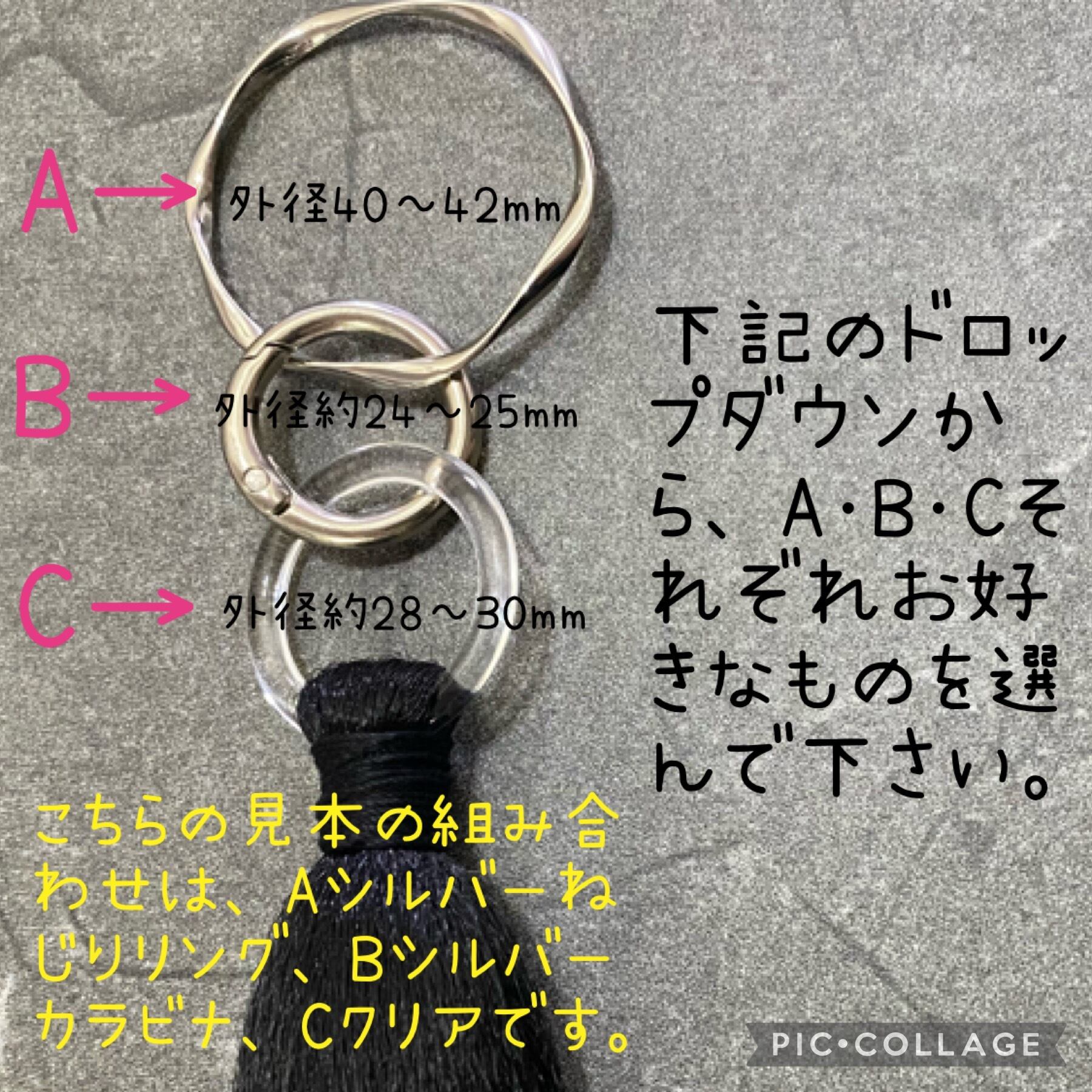 B 真ん中のカラビナリング(各種外径約24〜25mm)