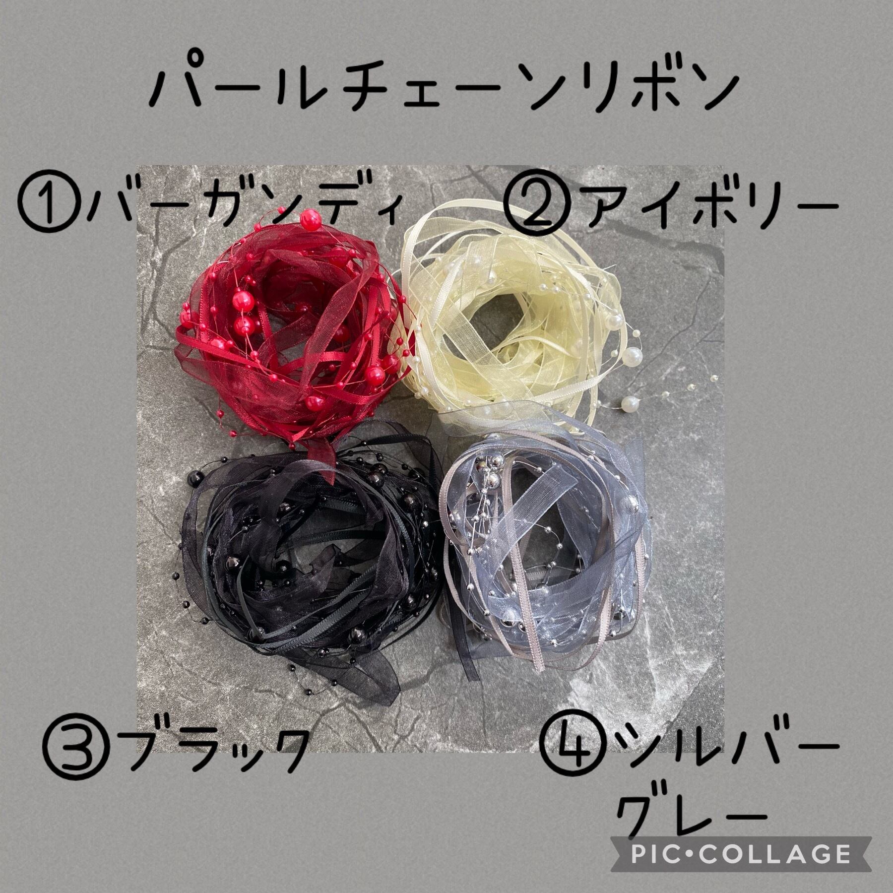 ツイストロープ、パールチェーンリボンのセット販売です。それぞれ1色ずつ選んで下さい。